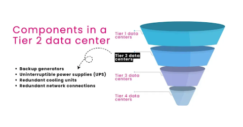 Next, Tier 2 data center: This type of data center offers increased reliability and 99.741% uptime for running a business’ operations. It is suitable for small and medium-scale business data protection.